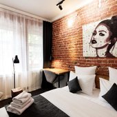 Номерной фонд представлен различными категориями, интерьер которых выполнен в оригинальном и индивидуальном стиле. В каждом из них установлена качественная мебель и современная техника.