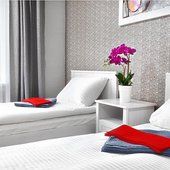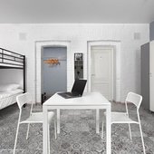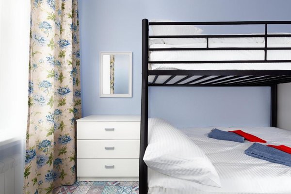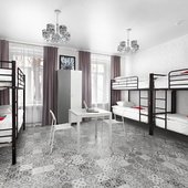 Гости могут выбрать комнату для некурящих. Есть возможность заселиться в комнату с шестью постояльцами или двумя двухместными кроватями. Можно выбрать, как женские, так и мужские номера. В каждом из них шкаф для одежды, телевизор, чайник. Ванная – для общего пользования.