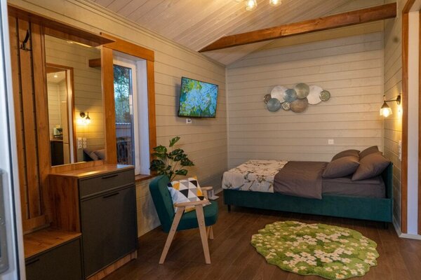 Каждый домик тщательно продуман и оснащён всем необходимым для вашего комфорта. Благодаря стильным решениям, они могут служить великолепными фотозонами для создания красивых снимков для ваших социальных сетей.