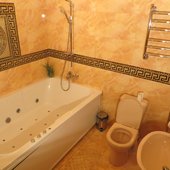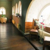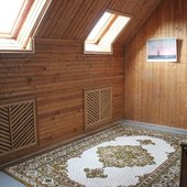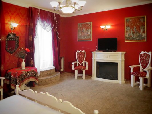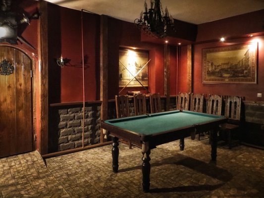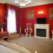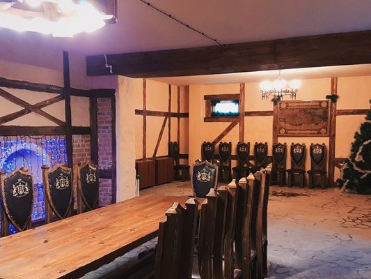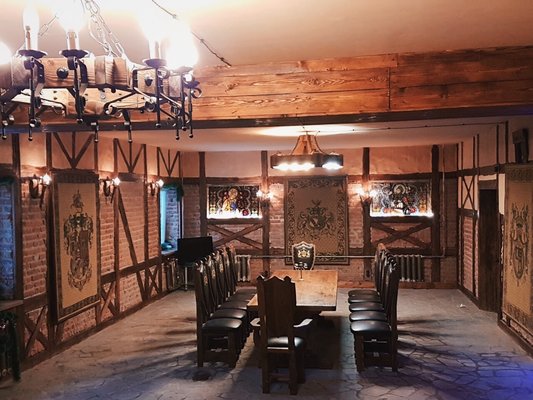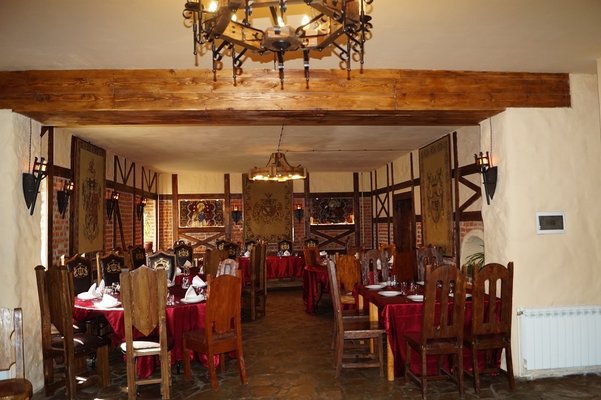В коттедже 3 этажа, 12 комнат, банкетный зал с гобеленами 100 кв м на 60 человек, имеется бильярд, сауна, бассейн 3,5х 4,5 м, просторный балкон, жилая башня. Особый номер для новобрачных с камином и балконом. Всего спальных мест – 24. Возможны дополнительные места. Спутниковое телевидение, караоке. Участок 18 соток с ландшафтным дизайном и большой беседкой в рыцарском стиле с камином и мангалом.В беседке можно разместить до 40 гостей. Парковка на 10 машин.