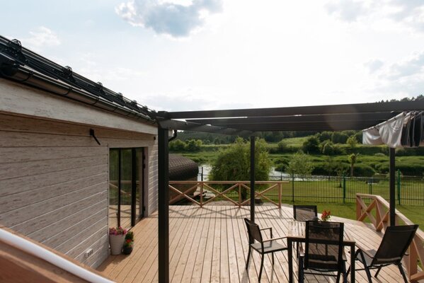 Баня и терраса, наполненные светом и теплом, создают идеальное пространство для восстановления сил и обретения внутренней гармонии.