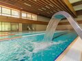 Бассейн разделен на 4 дорожки, оснащен гидромассажем стоп, гидромассажем позвоночника и водопадом, раздевалками и душевыми. Имеется зона отдыха. Дети допускаются в бассейн при росте не менее 140 см, умеющие плавать и в присутствии взрослых.
