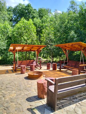 На территории комплекса работает ресторан европейской кухни. Для релаксации доступен банный комплекс с хамамом, финской сауной и массажным кабинетом. Для активного досуга на свежем воздухе обустроены спортивная и детская площадки, беседки и костровая зона. Также организуются рыбалка и конные прогулки. Для проведения торжественных мероприятий имеются банкетные залы. К услугам гостей — отдельные парковки перед корпусами и на всей территории.