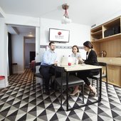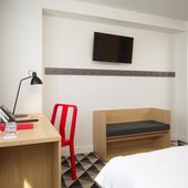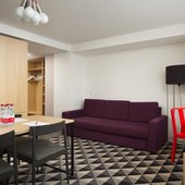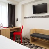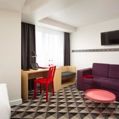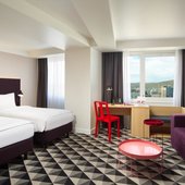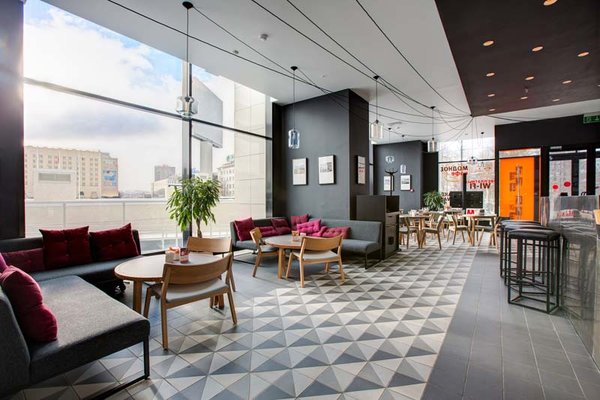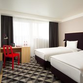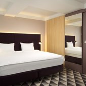Девятнадцатиэтажное здание комплекса, оснащенное современными лифтами, возвышается на площади Пяти углов. Отель включает в себя 186 номеров высокого уровня комфорта — «Люкс», «Делюкс», «Супериор» и просторные апартаменты. В номерах стильный, лаконичный интерьер, выдержанный в приятной цветовой гамме. Комнаты хорошо меблированы и оснащены бытовой техникой — в каждом номере есть телевизор, электрочайник, холодильник, апартаменты оборудованы мини-кухней.