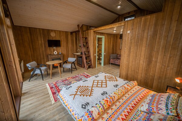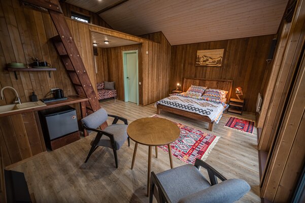 Дом-студия создаст атмосферу уюта и тепла, обеспечив современный комфорт для вашего отдыха.