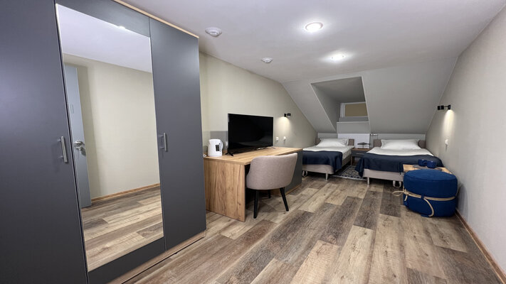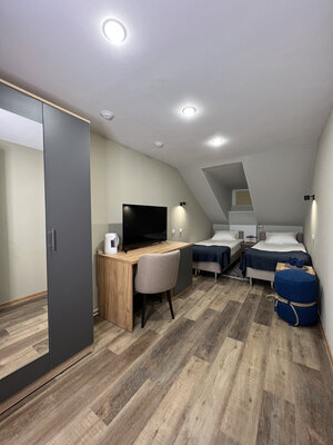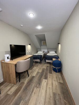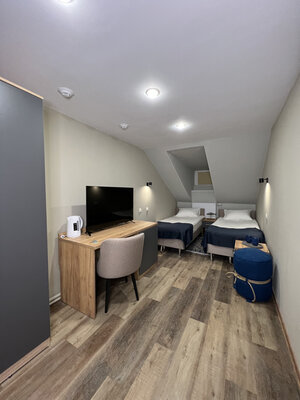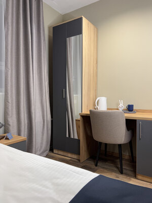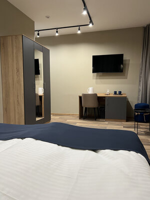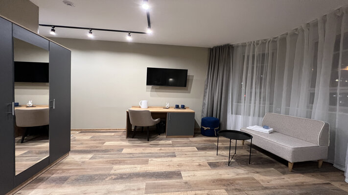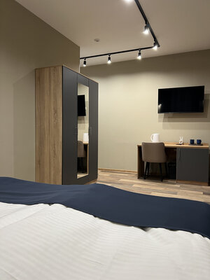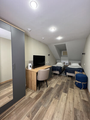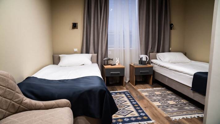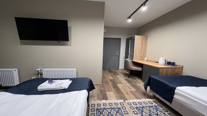 Мы предлагаем комфортабельные номера категории «Стандарт», рассчитанные на проживание одного или двух человек. Каждый номер оснащен всем необходимым для приятного отдыха: удобной мебелью, бесплатным Wi-Fi, современным ЖК-телевизором, холодильником, электрочайником и собственной ванной комнатой с душем.