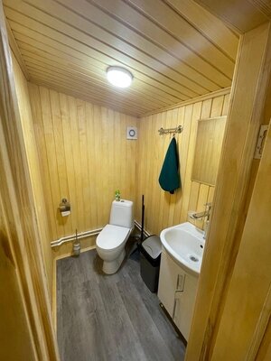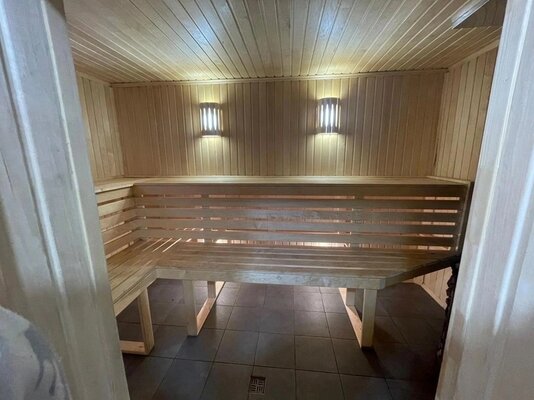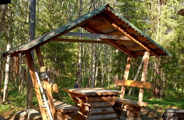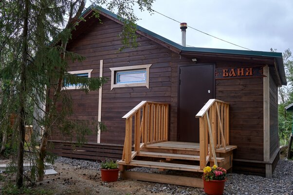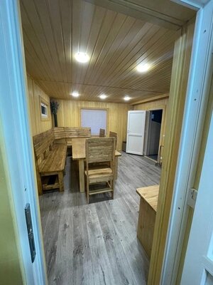 Баня, построенная из липы, рассчитанная на комфортное пребывание 12 человек (парная рассчитана на 8 человек). К аренде бани прилагаются простыни, полотенца (по количеству человек), шапочки, чайный набор, мини-холодильник, посуда.