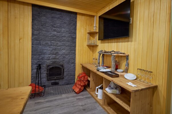 Уютные отапливаемые домики с камином на дровах, рассчитанные на компании от 6 до 40 человек. Рядом с каждым домом расположена уличная беседка и мангал для приготовления шашлыков.