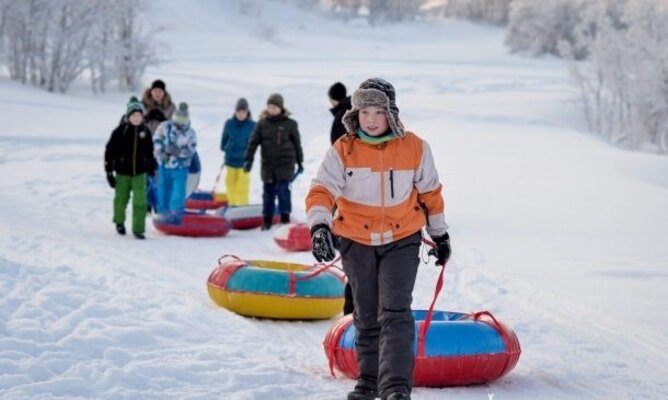 - трансфер на «снежном банане» от парка до оз. Кильдинское и обратно;