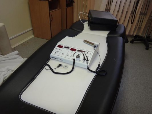 В массажных кабинетах, где в помощь золотым рукам массажистов есть вакуумно-роликовый массажер с компьютерным обеспечением, вибромассажер американского производства, а также аппарат массажа электростатическим полем для глубокой осцилляции мышц.