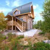 База построена в 2012 году и расположена на берегу Верхнетуломского водохранилища вдалеке от городской суеты и шума. Отдельные двухэтажные бревенчатые домики, построенные с учетом русских традиций, имеют все необходимые условия для комфортного отдыха. Чистые, светлые, теплые и уютные, домики оборудованы санузлом с современной сантехникой, душевой кабинкой, подогреваемыми полами, камином, кухонным уголком и дополнительным электрическим подогревом.