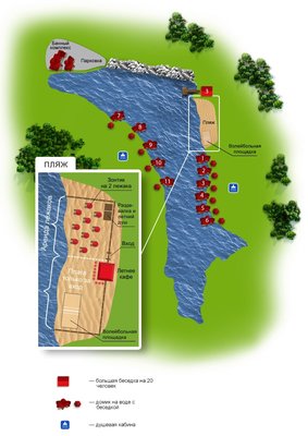 Каждый день Вас готовы принять и угостить вкуснейшими блюдами из русской кухни. Уютный зал на 36 человек с двумя открытыми стенами и видом на озеро подарит ощущение единения с природой и сделает трапезу еще аппетитнее.