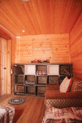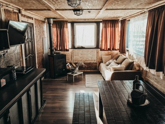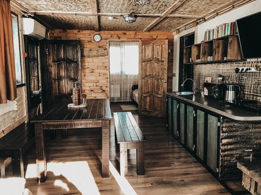 - Новичок – это необычное помещение, которое может быть использовано как кафе с максимальной вместимостью 30 человек, так и хостел лётного типа.