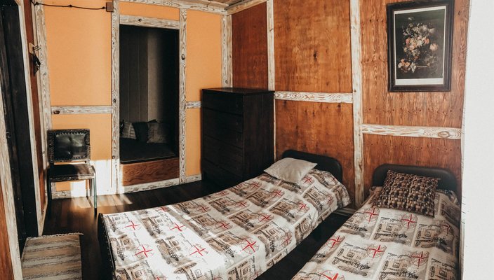 - Цена: 1000 ₽/час (в коттедже имеется гостиная, три изолированные спальни, душ, туалет, холодильник, микроволновая печь, чайник, телевизор, магнитофон, зона барбекю).