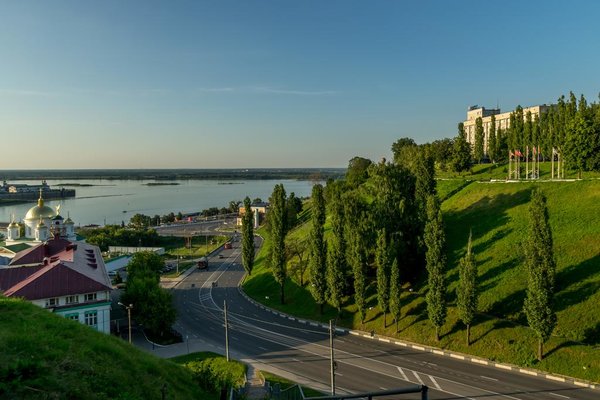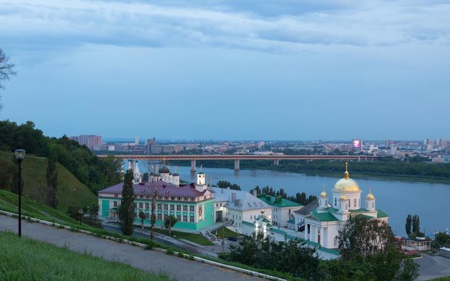 AZIMUT Отель Нижний Новгород 4* расположен в удивительно красивом месте на берегу Оки, а из его окон открывается панорамный вид на знаменитую Стрелку: место слияния рек Волга и Ока. В 10 минутах ходьбы находится историческая улица Рождественская со знаменитой церковью Строгановых, а в получасе ходьбы – Нижегородский Кремль. На противоположном берегу реки расположена Нижегородская ярмарка.