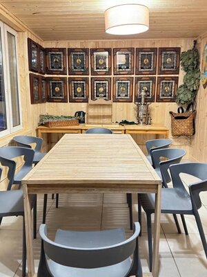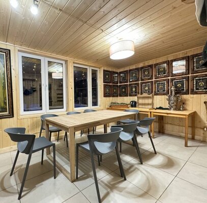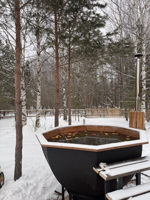 Русская баня погружает гостей в атмосферу тепла и уединения, где мягкий свет и панорамные виды на хвойный лес способствуют гармонии и расслаблению. Дополнительно к банным процедурам предлагаются различные услуги, такие как молодильный чан, арома-церемонии, парение, а также чаепитие с традиционным русским самоваром и домашними сладостями, создающими неповторимый уют и атмосферу гостеприимства.