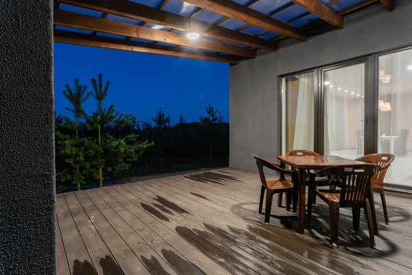 Все коттеджи имеют просторные крытые террасы для отдыха на свежем воздухе.