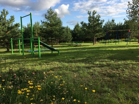 Для Ваших детей обустроена просторная игровая площадка с различными активностями (горка, качели и пр.), которые не дадут им скучать.