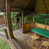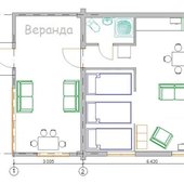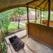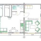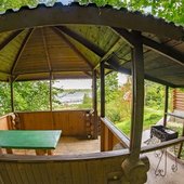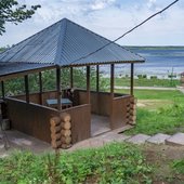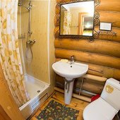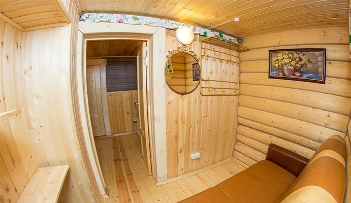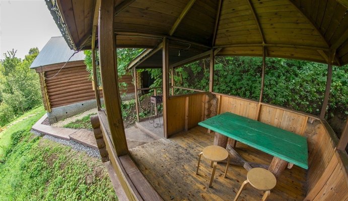 Баня состоит из парилки, комнаты отдыха, душа, санузла, раздевалки, большой открытой веранды.