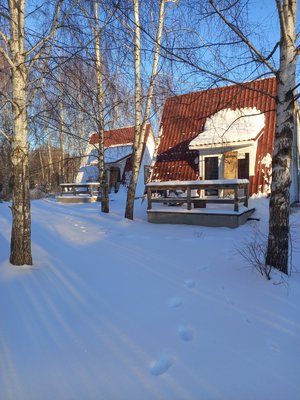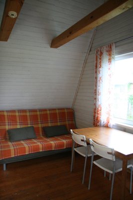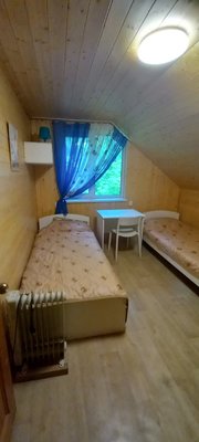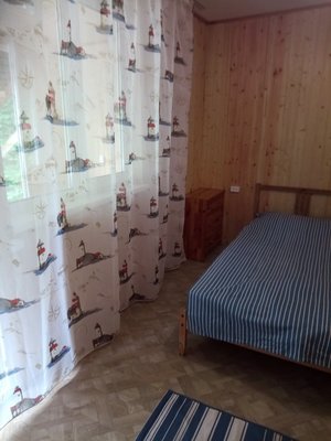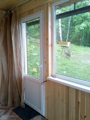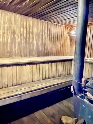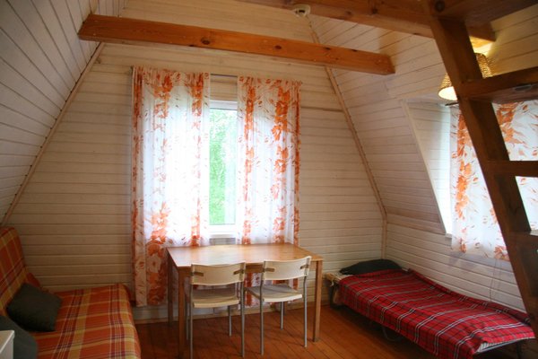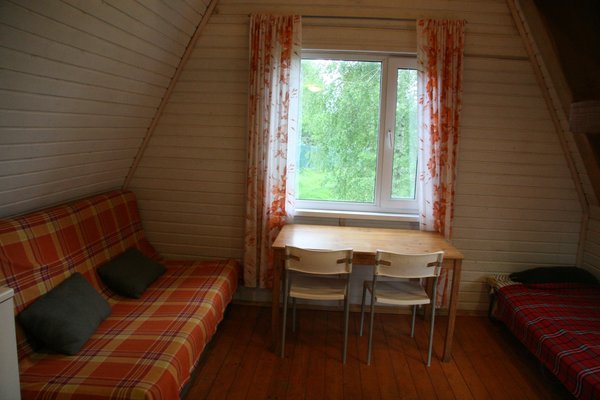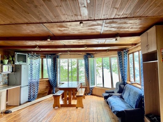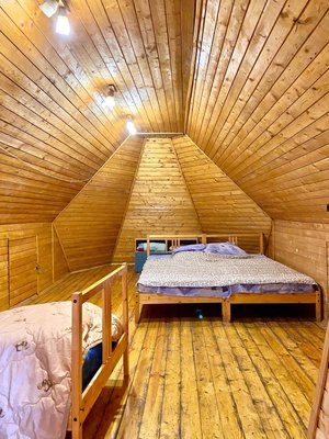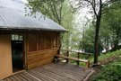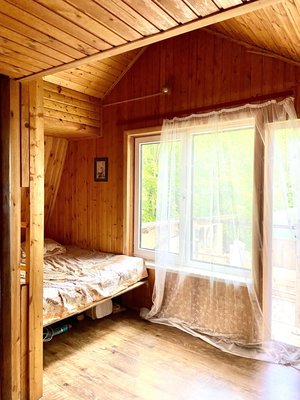 Гости могут разместиться в палаточных местах или в двухэтажном деревянном коттедже с баней на дровах, которую можно использовать без ограничений по времени.