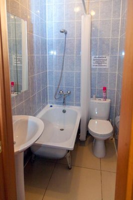 Номера в гостевом доме оснащены чайником. Собственная ванная комната с ванной укомплектована бесплатными туалетно-косметическими принадлежностями.
