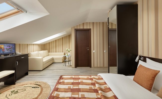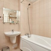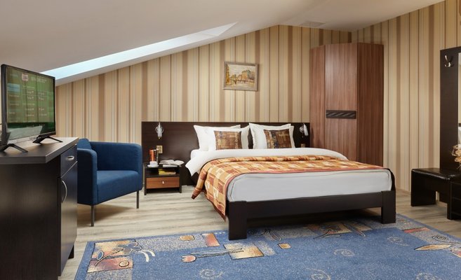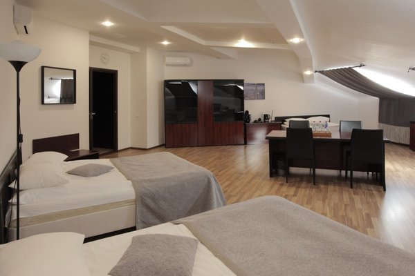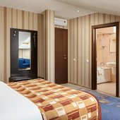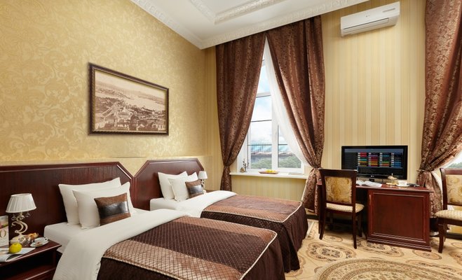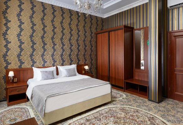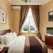 Номера отеля «Никитин» оформлены в сочетании светлых и темных оттенков и оснащены телевизором с плоским экраном, мини-баром и кондиционером. Собственная ванная комната укомплектована халатом, тапочками и бесплатными туалетно-косметическими принадлежностями.