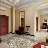 Ну начну с плюсов. Расположен в тихом месте, рядом храм, правда этот храм иногда и нарушает тишину грохая во все колокола, но это не особенно напрягает, да и "грохают" они днем, а ночью тишина ни...