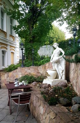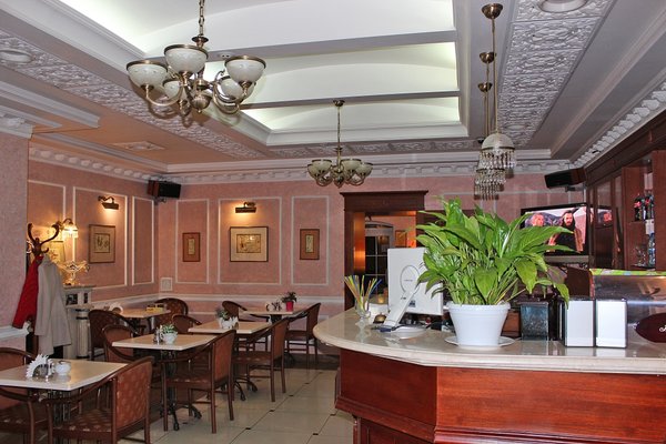 В кафе «Онегин» с небольшой террасой подают блюда интернациональной кухни. Каждый день в отеле сервируется континентальный завтрак.