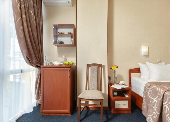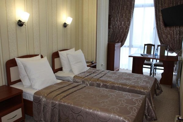 Останавливалась в этом отеле будучи в командировке. Номер бронировала через букинг, приятно удивила цена 2300 за двухкомнатный. Сам отель расположен на окраине города, если ехать с целью посмотреть достопримечательности, то этот вариант не самый удобный...