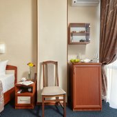 Наличие кулера с горячей водой, барная стойка в номере, новая мебель