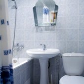 Номер категории трёхместный эконом. № 526 на 5 этаже уже давно требует ремонта. Вошли - и остолбенели: ностальжи а-ля советикус. Ванна сидячая (размер примерно 70х90) практически уже без эмали; смеситель расхлябан, отрегулировать напор воды и...