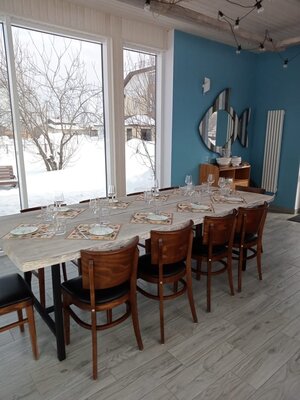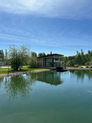 Беседка расположена на берегу красивого озера с выходом на террасу. В беседке есть стол, стулья, телевизор, музыка + светомузыка, вся необходимая посуда, чайник, холодильник, мангальная территория.