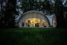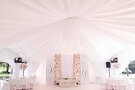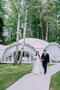 Загородный клуб «Ильдорф» приглашает провести свадьбу в белоснежном шатровом комплексе, где торжество на свежем воздухе сочетается с надежной защитой купола и парящими тканями, создающими изысканное настроение.