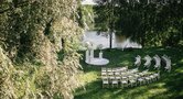 Загородный клуб «Ильдорф» организует выездные регистрации на нескольких живописных площадках: на просторной лужайке у корпуса А или у шатра, в ароматном фруктовом саду и на пирсе у озера. Цветущие поляны с легкими тканевыми декорациями, нежный шелест листьев и пение птиц создают естественный фон для торжественной клятвы, а мягкий солнечный свет придает кадрам теплое, романтичное очарование.