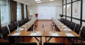 Загородный клуб «Ильдорф» предоставляет полный организационный сервис: подготовку залов, питание (кофе-брейки, бизнес-ланчи и фуршеты) и программу для семей участников. На территории находятся две уютные переговорные — «Кобург» и «Аугсбург» (по 35 м²), два конференц-зала площадью 70 м² и 130 м², а также холл для перерывов и неформального общения.