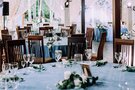 Помещение оборудовано кондиционером и отдельной зоной гардероба; в комплект аренды включены столы и стулья, белый текстиль и мебель в гостевой зоне, что обеспечивает готовность пространства к приему гостей и комфортное проведение мероприятия.