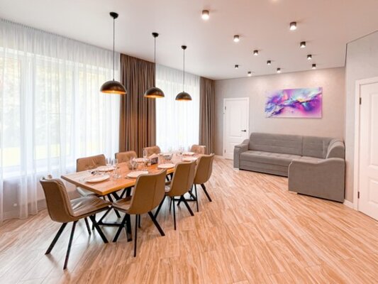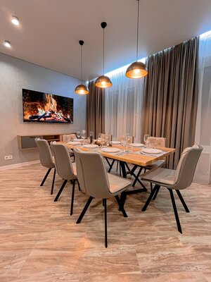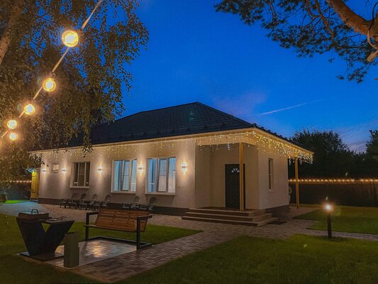 Гостевой дом оснащен всем необходимым для комфортного отдыха: просторной сауной с компактным бассейном, Wi-Fi, аудиосистемой, караоке и двумя Smart TV с подписками на популярные стриминговые сервисы.