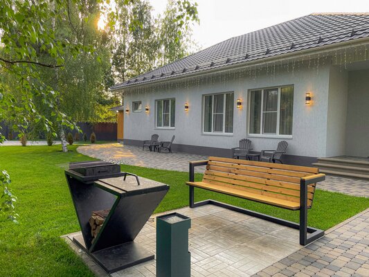Кухонная зона полностью оборудована для приготовления пищи и организации праздничных мероприятий, а уютные комнаты создают атмосферу уюта. Гости могут воспользоваться мангалом на улице, чтобы насладиться приготовлением барбекю.