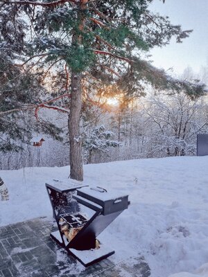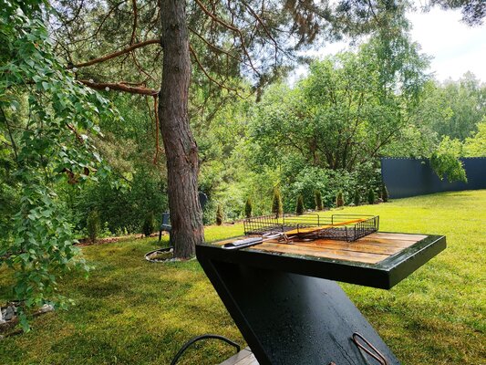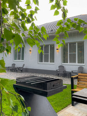 На территории есть мангальная зона, решётка и шампура (угли, розжиг гость привозит самостоятельно либо можно приобрести на месте).