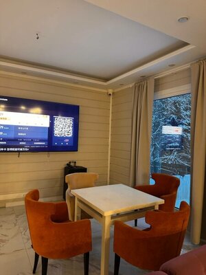 На первом этаже гостиницы «Лес Клуб Атмосфера» находится стильный банкетный зал, идеально подходящий для свадеб, корпоративов, тренингов и других торжественных мероприятий.