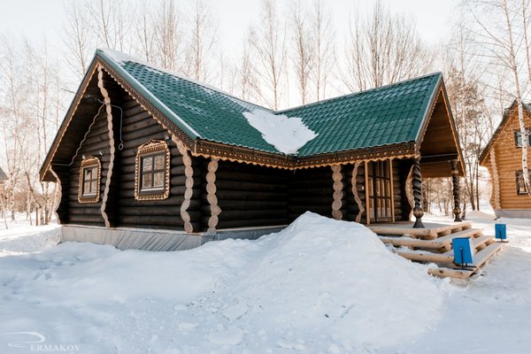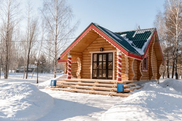 Указанная база отдыха находится всего в тридцати минутах езды от Верхних Печер. Место расположено в сосново-березовом лесу. Приехав на базу отдыха, вы почувствуете атмосферу праздника, окунетесь в атмосферу русских традиций и забав, ведь компания предлагает вам отдохнуть в деревянных стилизованных домиках, со всеми удобствами.