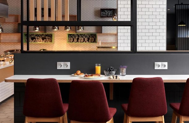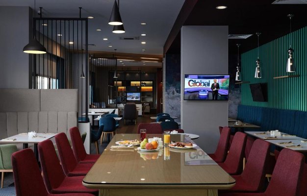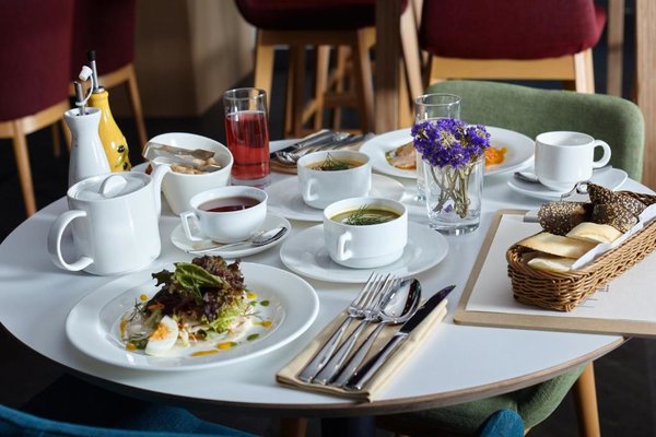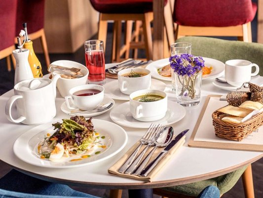 Ресторан на первом этаже отеля с расширенным меню питания.Удобная парковка как платная так и бесплатная.Местоположение-центр города.