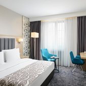 Посетив город Нижний Новгород остановились в отеле Mercure. Были приятно удивлены сервисом этого отеля. Уж насколько я чистюля ито придраться по уборке номера было нечего по сравнению с другими отелями. Коллектив очень доброжелательный и отзывчивый. Номера радуют удобной обстановкой. Приятно было после длительного перелета оказаться в таком номере:чай или кофе на выбор можно попить прямо в номере, так как...