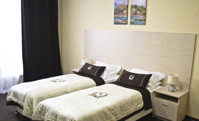Новая стильная мебель, удобный матрас, расположение рядом с парком, завтраки по заказу, лифт. Просторный номер