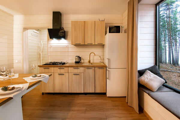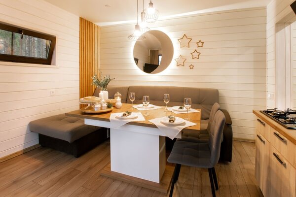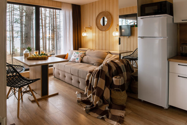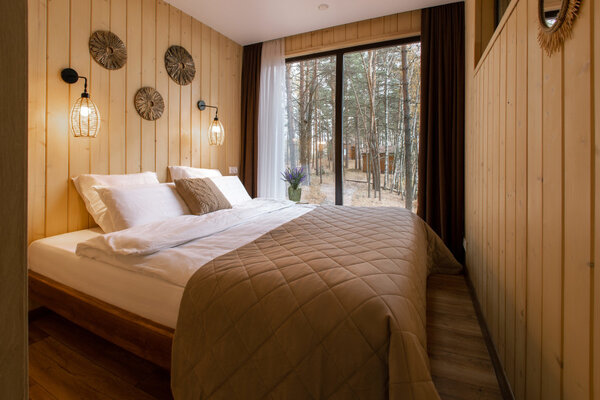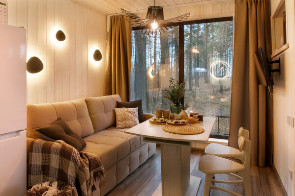 На территории Глэмпинга расположены уютные экодомики, выполненные из натуральных материалов и предоставляющие максимальный уровень удобства. Каждый дом оснащен спальней, гостиной, ванной комнатой и полностью оборудованной кухней. Здесь вы сможете насладиться покоем и уединением, находясь в объятиях природы.