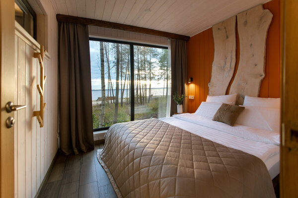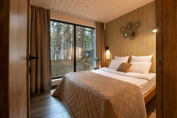 Глэмпинг «Мыс» — это пространство, обеспечивающее комфорт премиум-класса, окруженное природной красотой. Пробуждаясь по утрам, вы погрузитесь в захватывающий вид пейзажей непосредственно из окон спальни и гостиной. В любое время года вы сможете насладиться этой роскошью, окруженные великолепием природы.