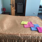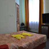 В светлых номерах отеля, оформленных в лаконичном стиле, установлен телевизор. В числе удобств общая ванная комната в коридоре.