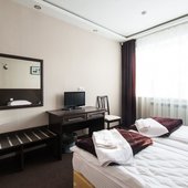Отель давольно бюджетный и очень близко от Нижнего Новгорода. От черты города буквально минуты 3, от центра, если без пробок, минут 40. Отель бюджетный. Для бюджетного отеля очень хороший номерной фонд; в номере кровати, стул, холодильник, большой шкаф купе, телевизор, фен, полотенца, тапочки, кондиционер. Из окна вид на сосновый бор; Громадным плюсом является большой спортивный комплекс с хорошим бассейном...
