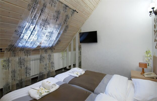 Отель очень понравился! Очень душевный, небольшой. С парковкой проблем не было. Персонал очень приветливый. Завтрак вкусный: каша овсяная, омлет и кусочек тортика. Чай/ кофе в неограниченном количестве. Номер для двоих просторный. Единственное, что меня смутило...
