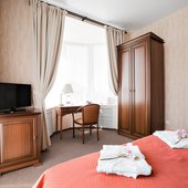 В числе стандартных удобств — шкаф для одежды, телевизор с плоским экраном, кондиционер, холодильник и мини-бар. В собственной ванной комнате с ванной имеются тапочки. В некоторых номерах есть балкон.
